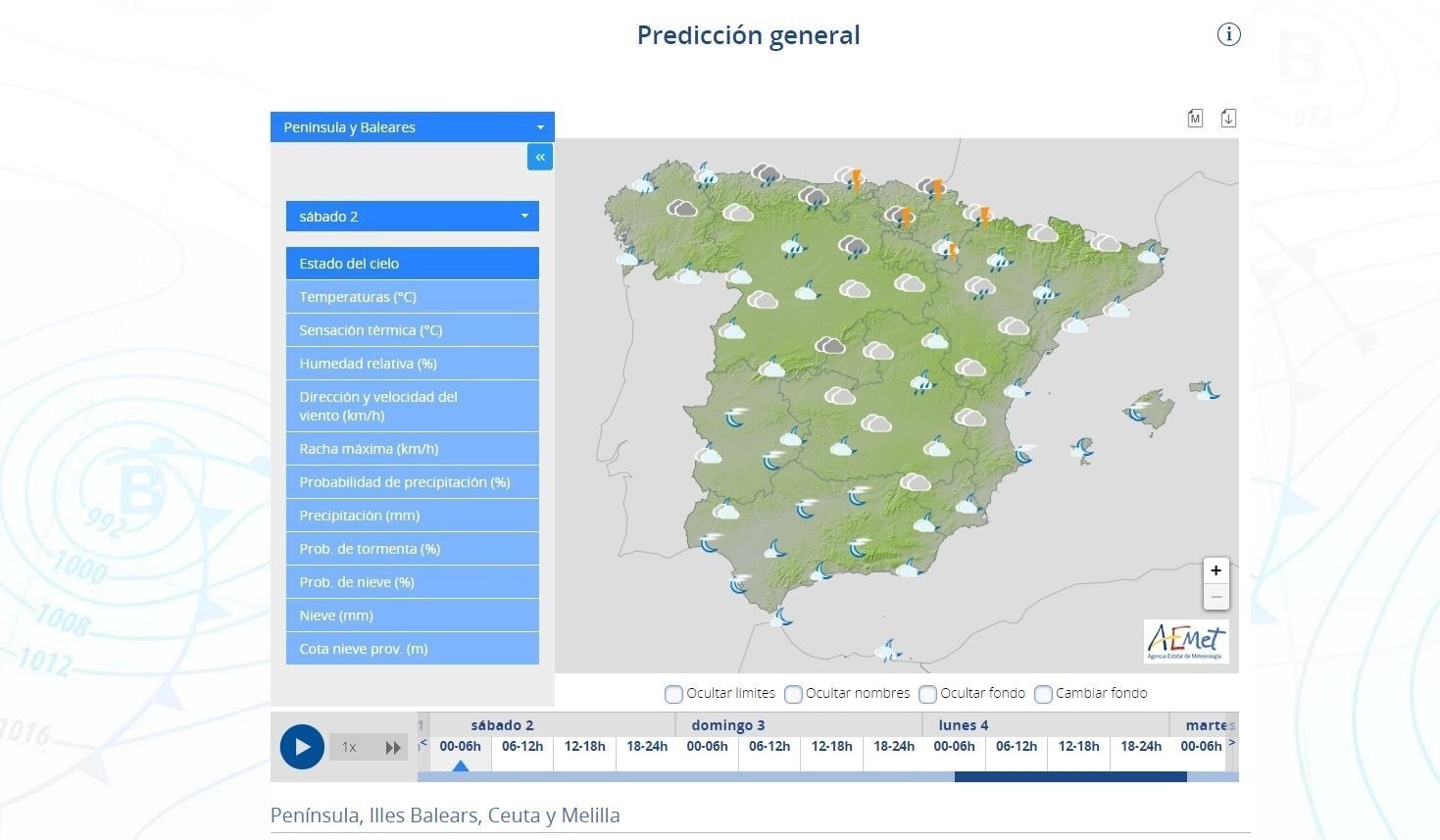 En el entorno del valle del Ebro, y zonas próximas del nordeste, las precipitaciones podrían ser más intensas y persistentes, con acumulados más importantes. Durante el domingo, continuarían las precipitaciones y las tormentas en gran parte de la Península y Baleares.