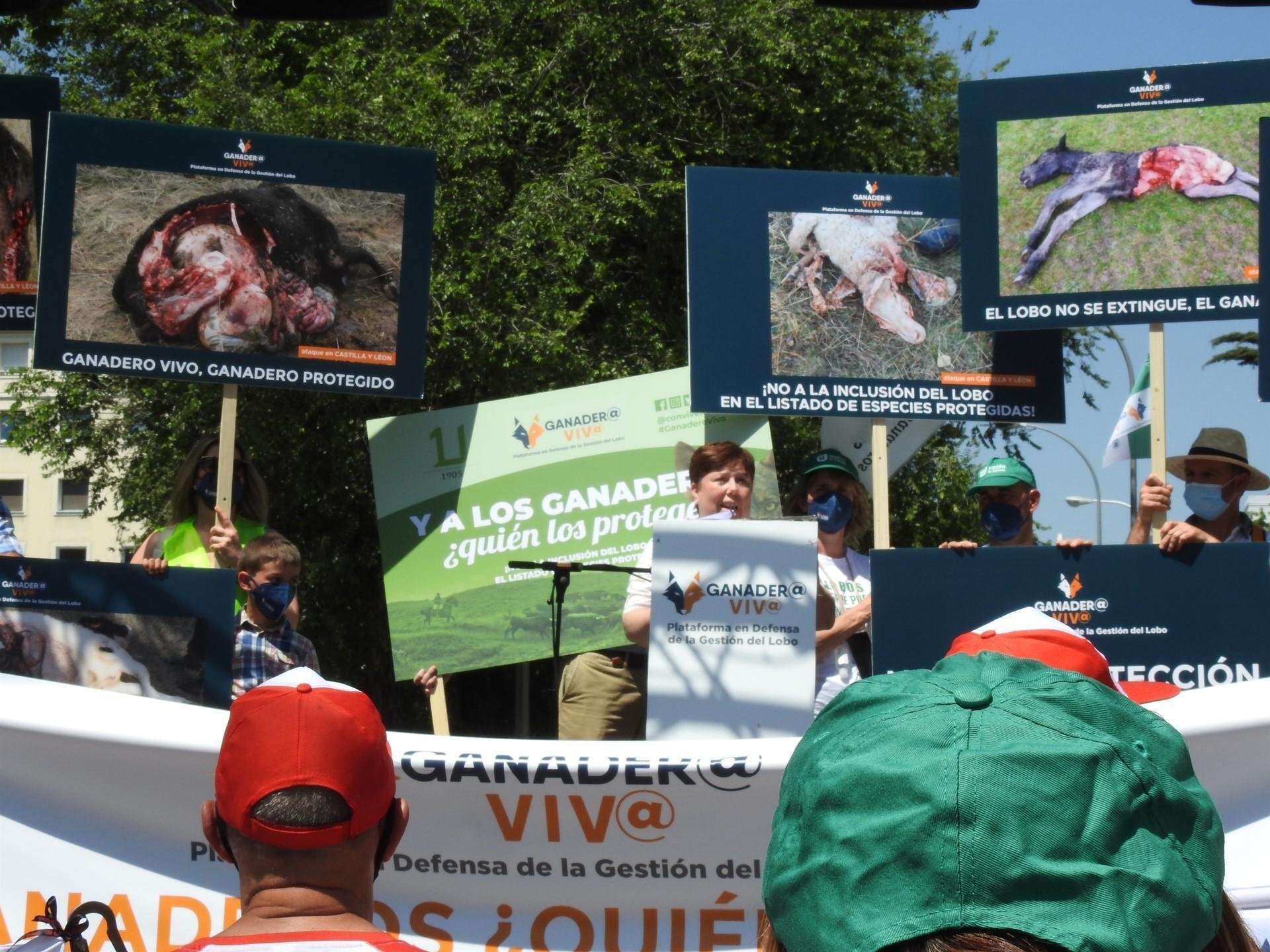 Por su parte, una de las asistentes a esa concentración es Marta García, ganadera de Cantabria, quien ha defendido su "derecho a poder trabajar libremente y dignamente", y ha alertado de que con la protección de este animal, el Ministerio de Transición Ecológica y del Reto Demográfico "pretende hacer al lobo intocable".