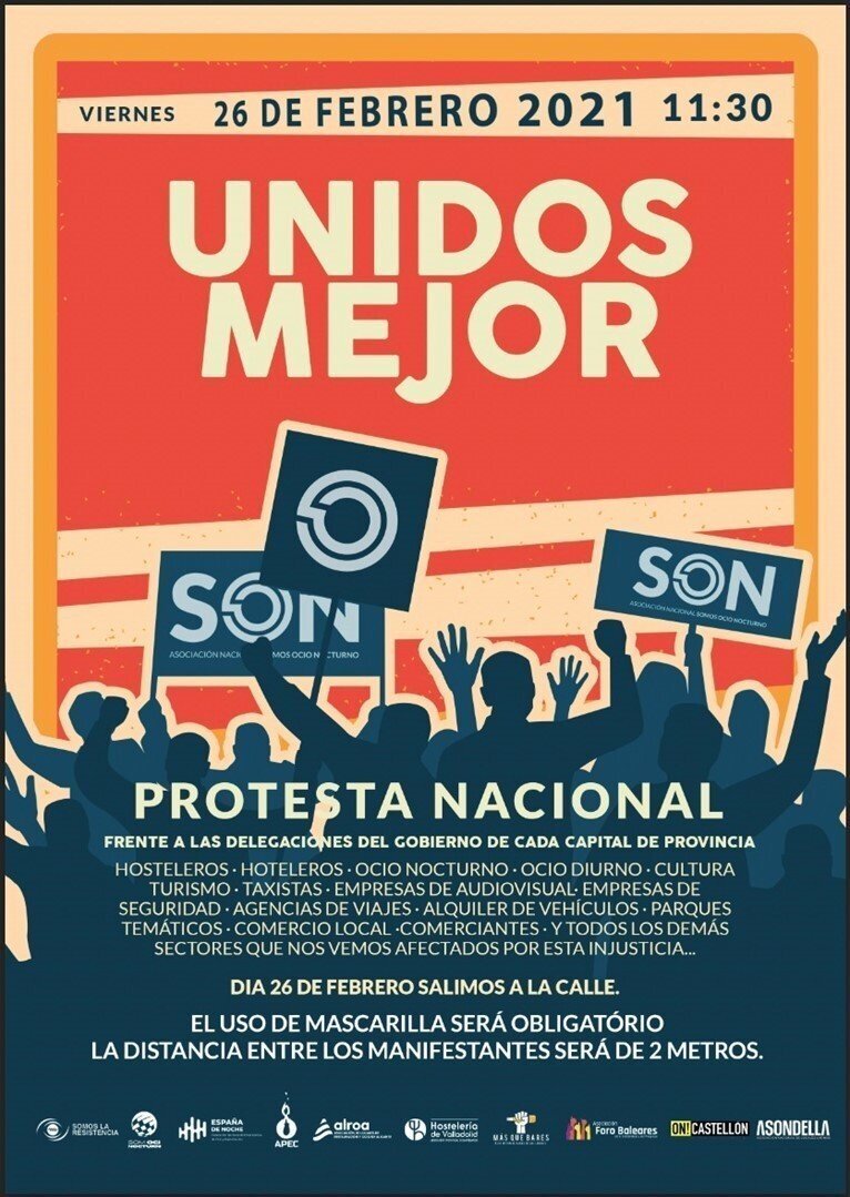 El sector del ocio nocturno ha realizado un llamamiento a la hostelería y al turismo a movilizarse de forma conjunta el próximo día 26, a las 11 horas, en toda España, bajo el lema 'Unidos mejor', para reivindicar la discriminación que están sufriendo estos sectores en la crisis del coronavirus, según ha informado la Asociación Nacional Somos Ocio Nocturno (SON).