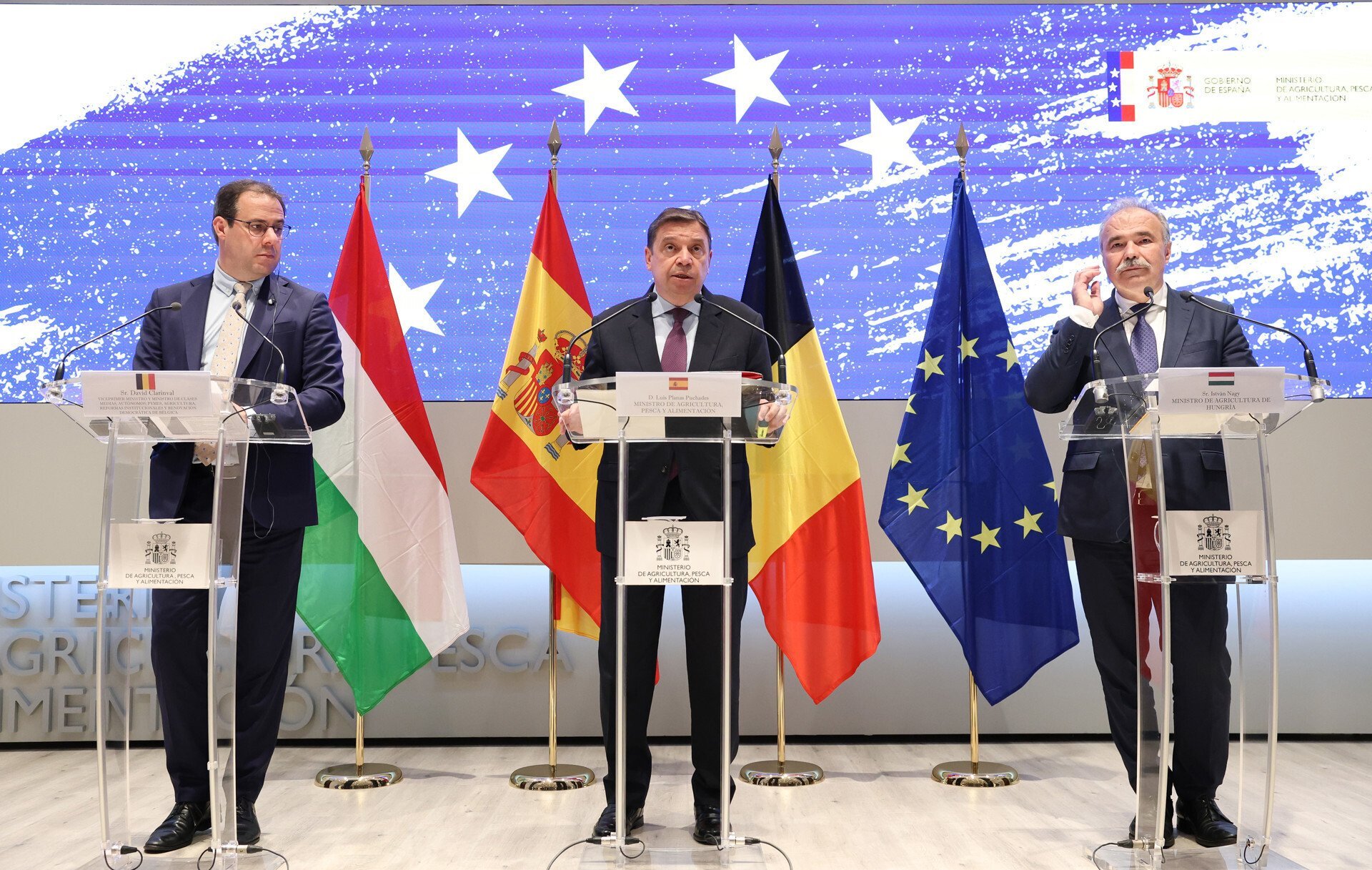 "En la reunión con mis colegas belga y húngaro hemos hecho referencia a la problemática de esta menor pluviometría, lo que demuestra que el caso español no es único, pero es más acentuado que en otros. Mañana se discutirá sin duda este tema en Luxemburgo y tendremos ocasión de defenderlo por parte de la delegación española", ha asegurado Planas en la rueda de prensa tras la reunión con el ministro de Trabajadores Autónomos, Pymes, Agricultura y Reformas Institucionales y Renovación Democrática de Bélgica, David Clarinval, y con el de Agricultura de Hungría, István Nagy, que se enmarca en la preparación para las próximas presidencias de la UE.