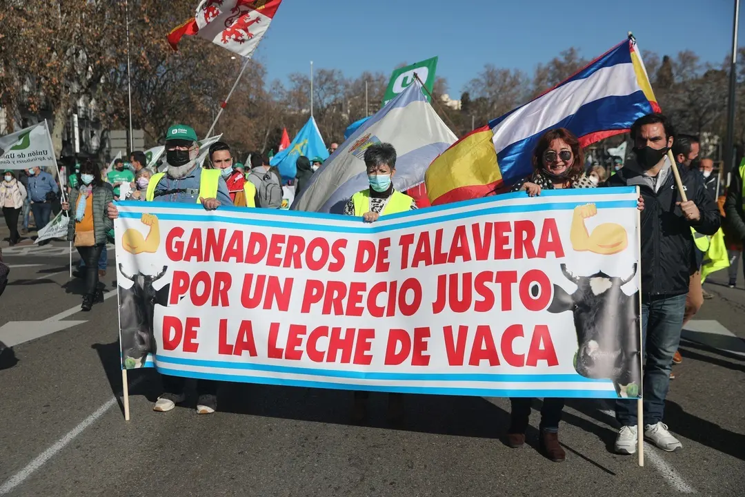En concreto, la manifestación, que ha estado convocada por Unión de Uniones de Agricultores y Ganaderos, junto con las organizaciones OPL del Sur, OPL Nacional y Plataforma Stop Abusos de Talavera y Comarca 'Agata', ha exigido ante Agricultura "herramientas reales" para el correcto funcionamiento de la cadena de valor del sector lácteo y pedir al Departamento que lidera Luis Planas que "no sea cómplice de la desaparición del sector de vacuno de leche".