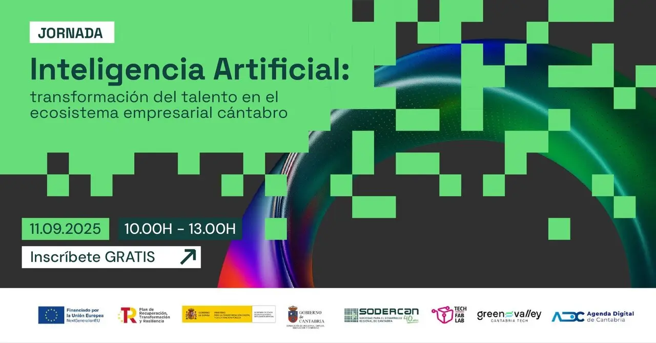 La Sociedad para el Desarrollo de Cantabria (SODERCAN), adscrita a la Consejería de Innovación, ofrece este jueves la jornada 'Inteligencia Artificial: Transformación del talento en el ecosistema empresarial cántabro', dirigida a empresas y emprendedores.