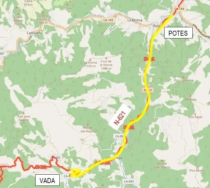 El objeto de la actuación prevista entre Vada (término municipal de Vega de Liébana) y Potes es mejorar las prestaciones del tramo de N-621 entre los kilómetros 137,5 y 148,5.
