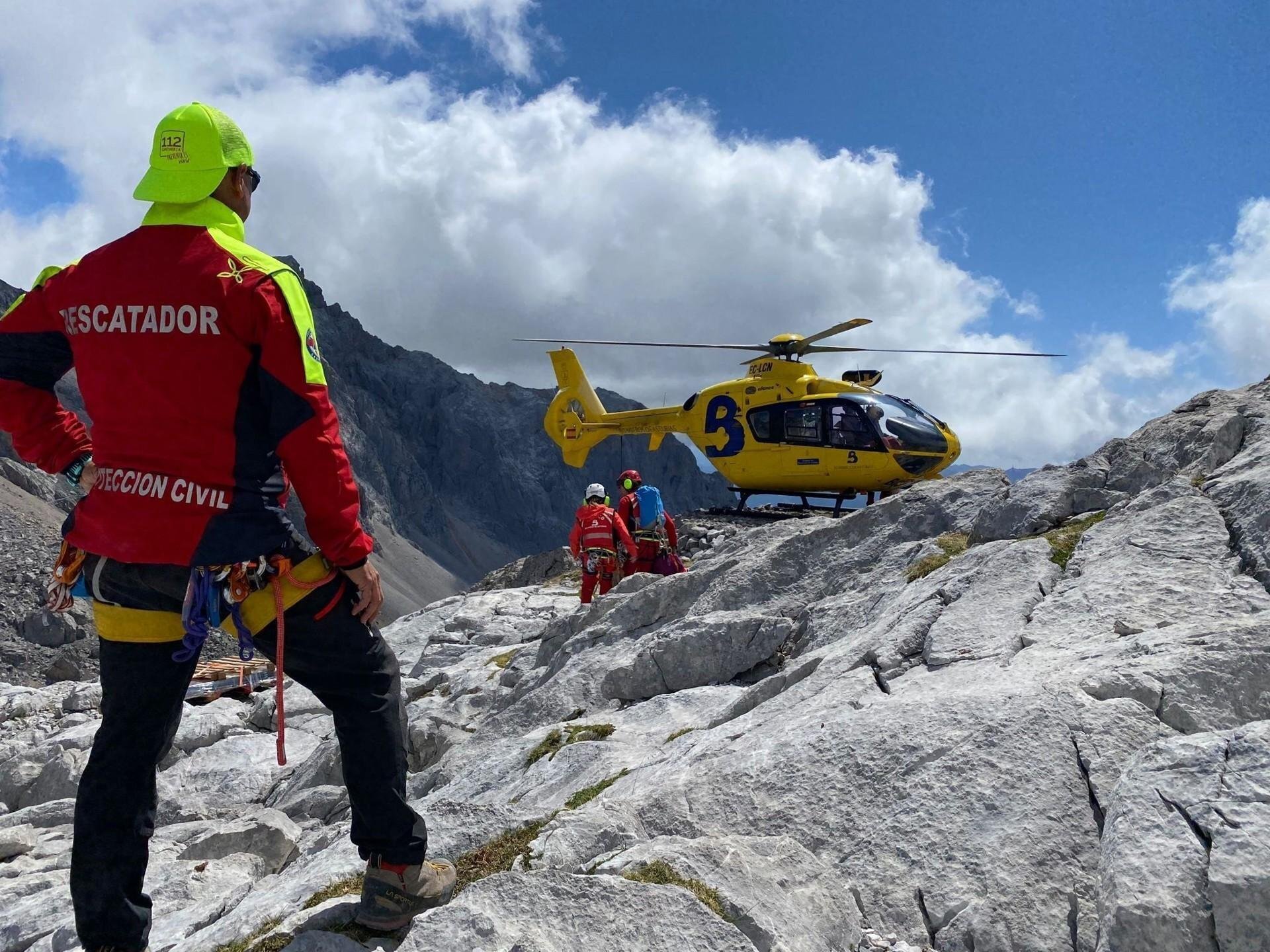 El guarda del refugio de montaña dio aviso del accidente al Centro de Atención a Emergencias 112 del Gobierno de Cantabria minutos antes de las 10.40 horas, que movilizó a la aeronave de rescate para acudir en su ayuda. Sin embargo, ante la imposibilidad de vuelo desde esta Comunidad Autónoma por las condiciones meteorológicas, y las lesiones de la víctima, se contactó con el 112 del Principado para solicitar la intervención de su helicóptero medicalizado.