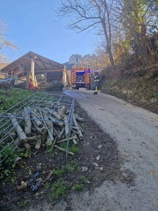 Bomberos del 112 Cantabria del parque de Liébana sofocaron ayer un incendio junto a un pajar de Bárago, en Vega de Liébana.