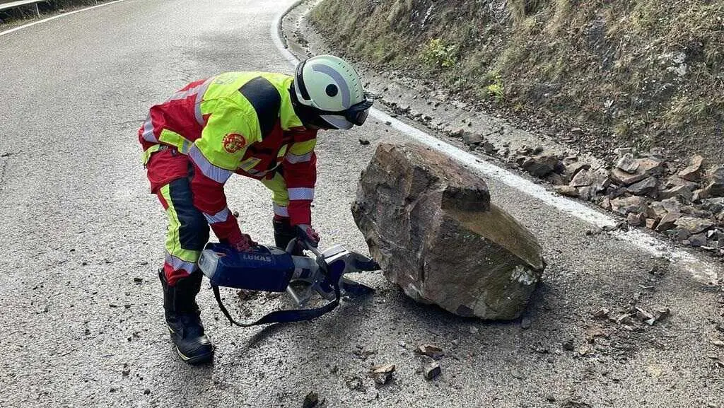Bomberos del Gobierno de Cantabria han retirado esta tarde una piedra de grandes dimensiones caída en la calzada de la carretera autonómica CA-881 en Cillorigo de Liébana, a la altura del kilómetro 1,3.