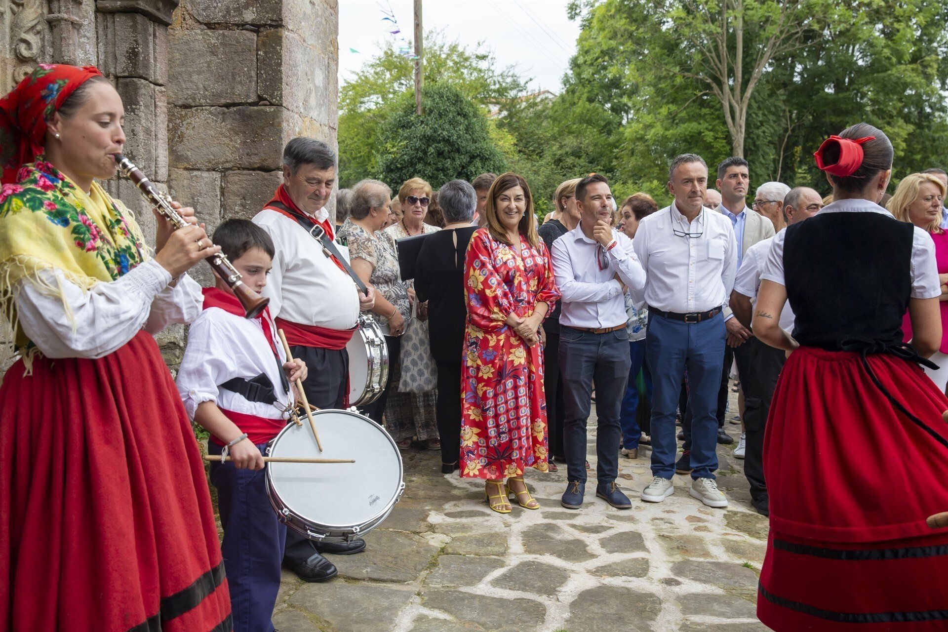 La presidenta de Cantabria, Maria José Sáenz de Buruaga, ha acompañado esta mañana a los vecinos de Pámanes, en Liérganes, durante la celebración de los actos centrales de la festividad de San Lorenzo.