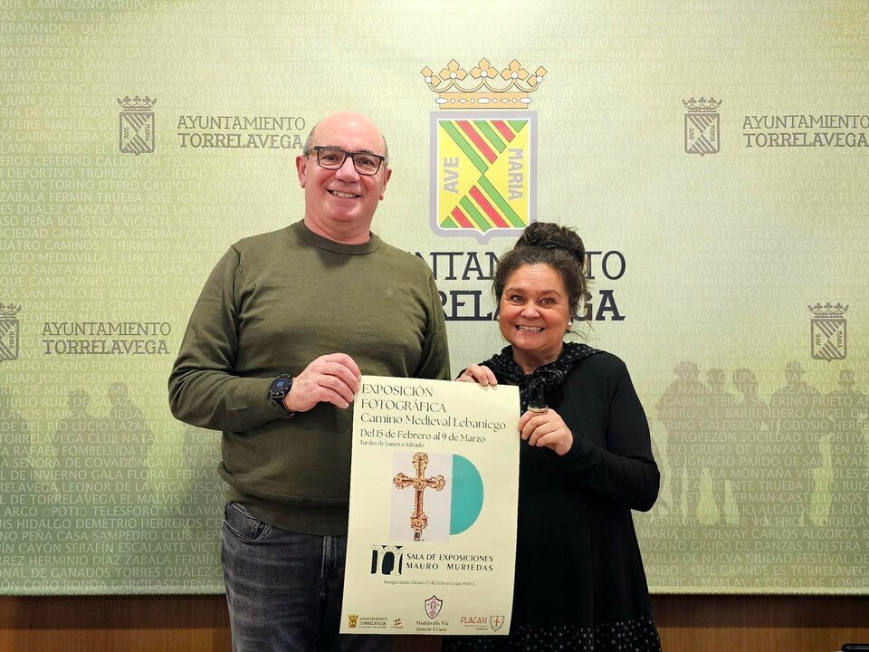 La concejala de Cultura, Esther Vélez, acompañada por Alfonso Crespo, de la Plataforma Camino Medieval Lebaniego, ha presentado este miércoles en rueda de prensa esta muestra fotográfica, titulada 'Camino Medieval Lebaniego', que se podrá visitar con entrada libre y gratuita.