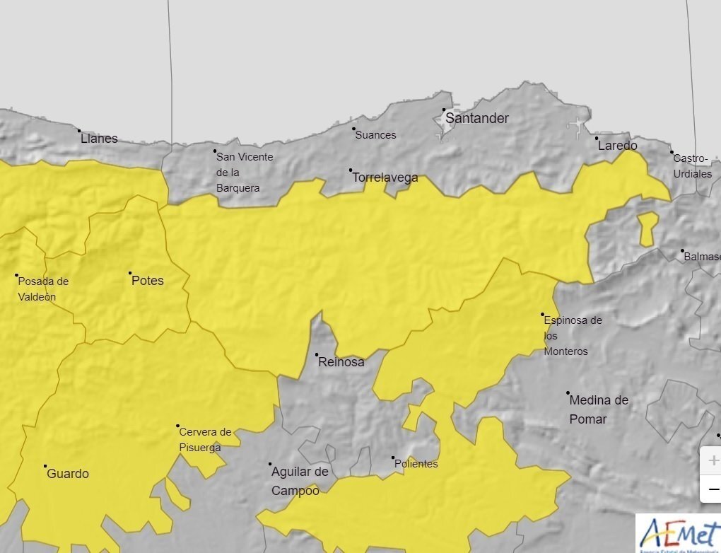 Cantabria estará durante esta madrugada en aviso amarillo (riesgo) por viento en Liébana y centro y valle de Villaverde, con rachas máximas que pueden alcanzar los 90 kilómetros por hora.