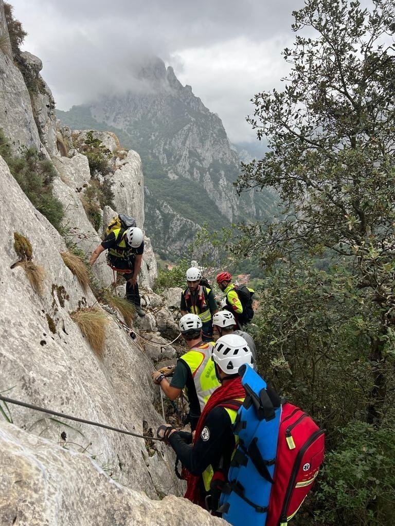 Concluye con éxito el rescate del varón lesionado en una pierna en la ferrata de La Hermida