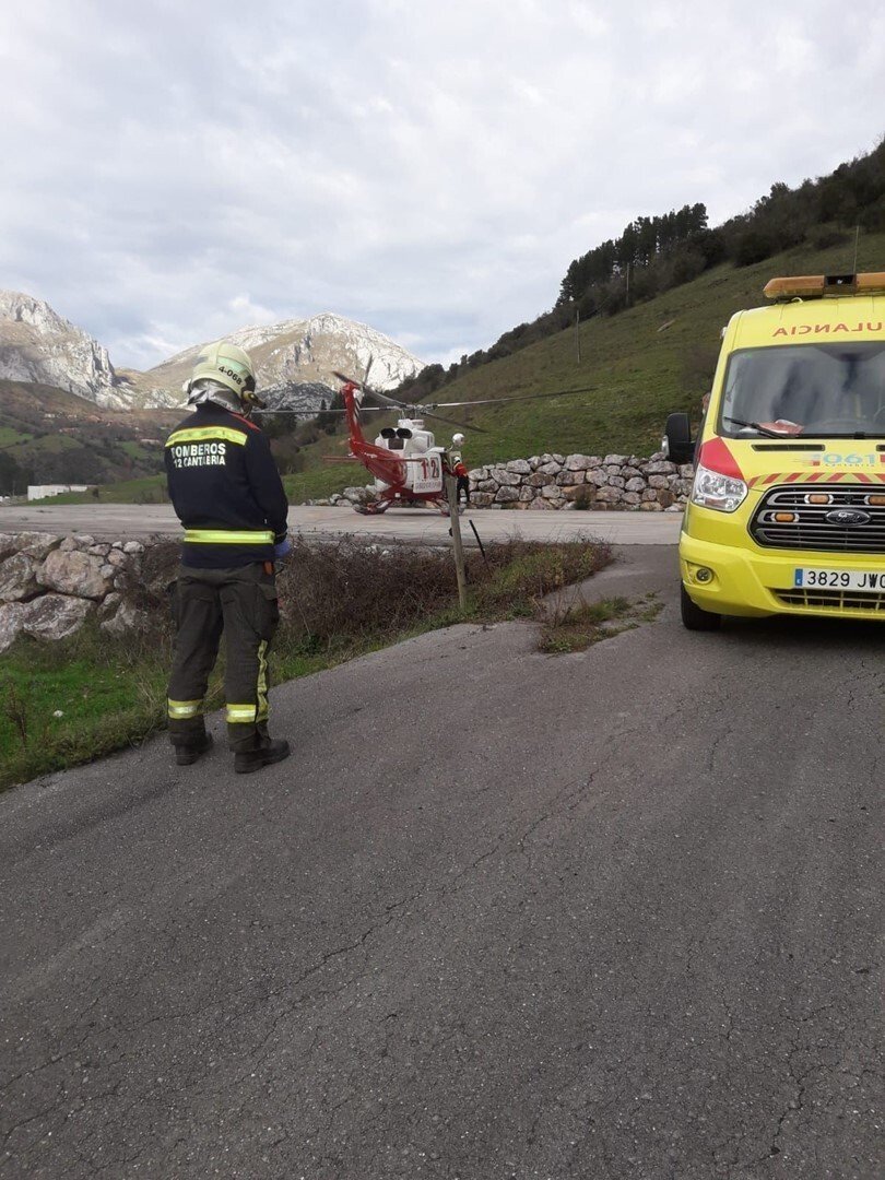 Los bomberos del Parque de Emergencias de Tama han apoyado las maniobras de aterrizaje y despegue del helicóptero en la comarca lebaniega.
