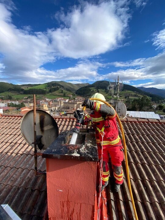 Bomberos del Servicio de Emergencias 112 del Gobierno de Cantabria han extinguido este lunes por la tarde un incendio en la chimenea de un edificio de viviendas en Potes.