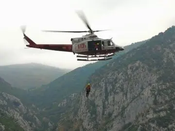 El helicóptero de Cantabria rescató el sábado por la tarde a dos personas con posible fractura de tobillo.
