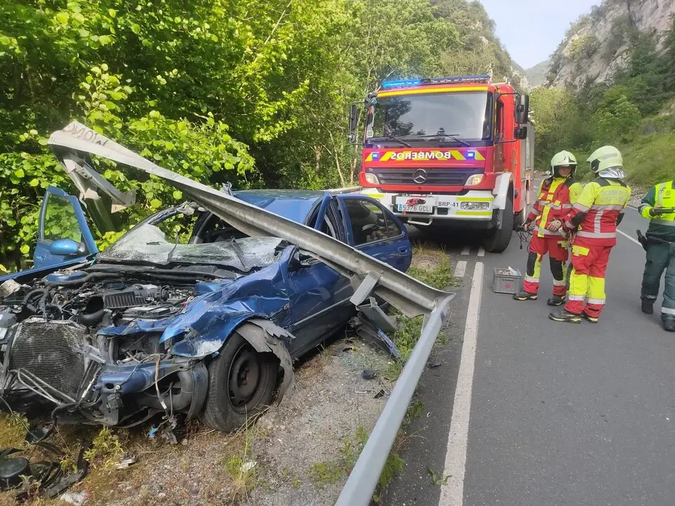El conductor de un turismo ha resultado herido este domingo tras salirse de la vía en el Desfiladero de La Hermanida. En el vehículo viajaban otras dos personas sin que aparentemente hayan sufrido heridas.