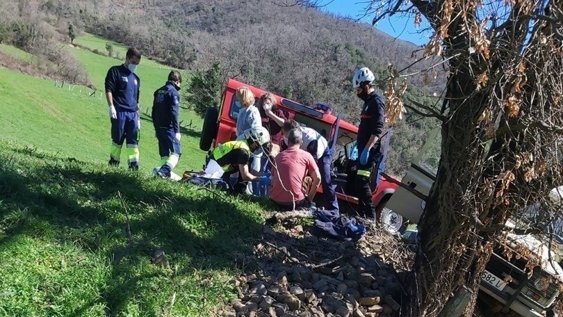 Un varón de avanzada edad ha resultado herido este mediodía tras salirse con el vehículo que conducía de una pista forestal de la localidad de Bárago (Vega de Liébana).