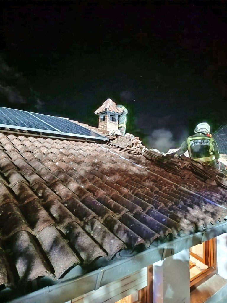El incendio de la chimenea de una casa de la localidad de Frama, en Cabezón de Liébana, ha afectado a una amplia zona perimentral de la cubierta.