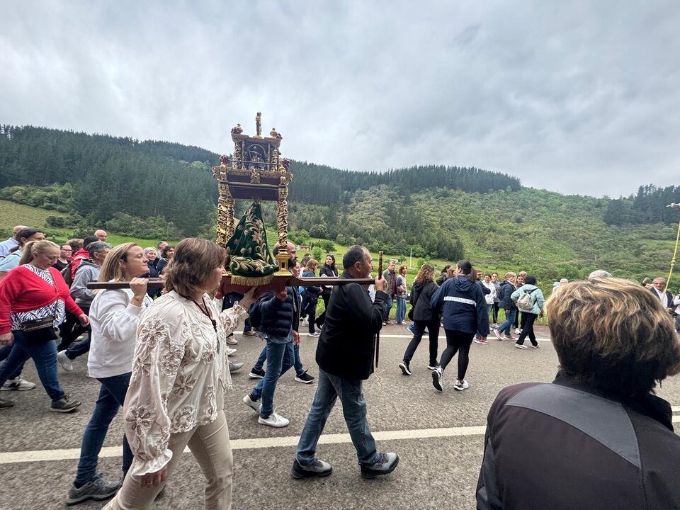 Llevada en hombros, la imagen de la Virgen ha recorrido varios puntos de la comarca, desde Aniezo, en Cabezón de Liébana, hasta el monasterio de Santo Toribio.