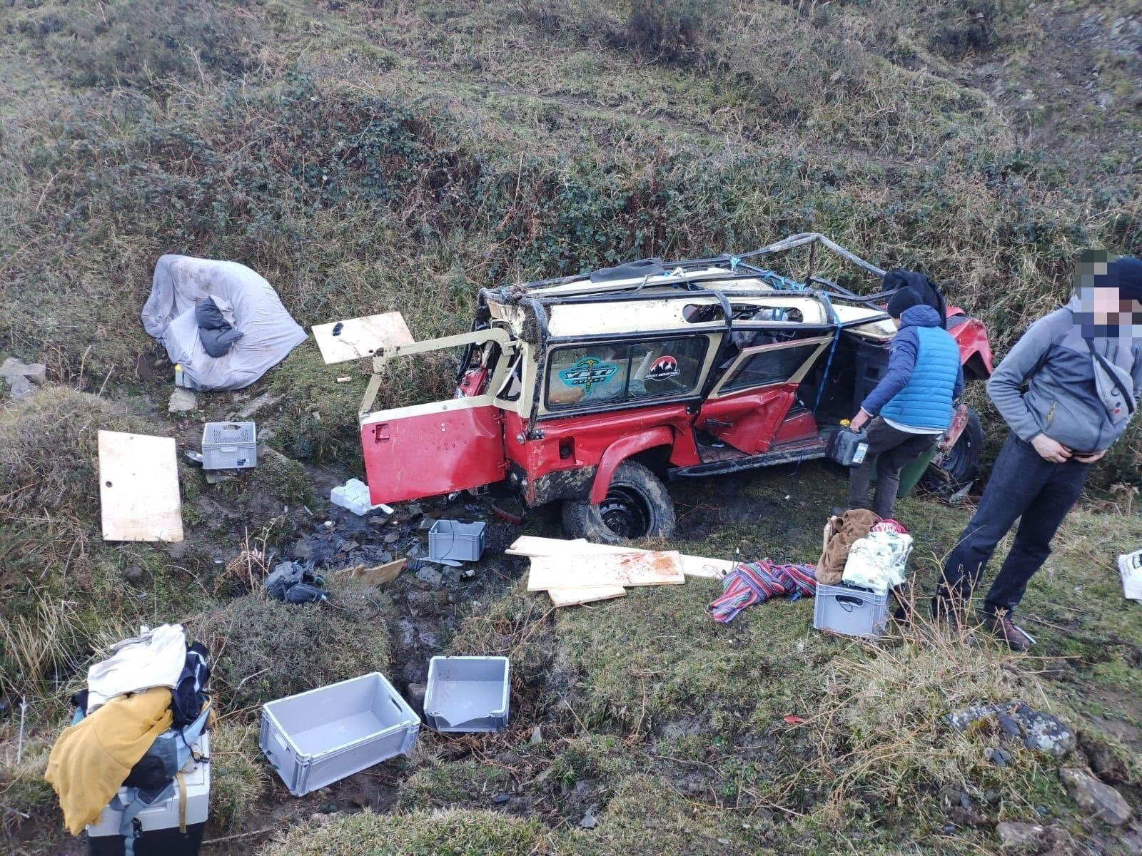 Se precipita un coche por una ladera de un puerto de Liébana pero sus ocupantes lograr escapar antes