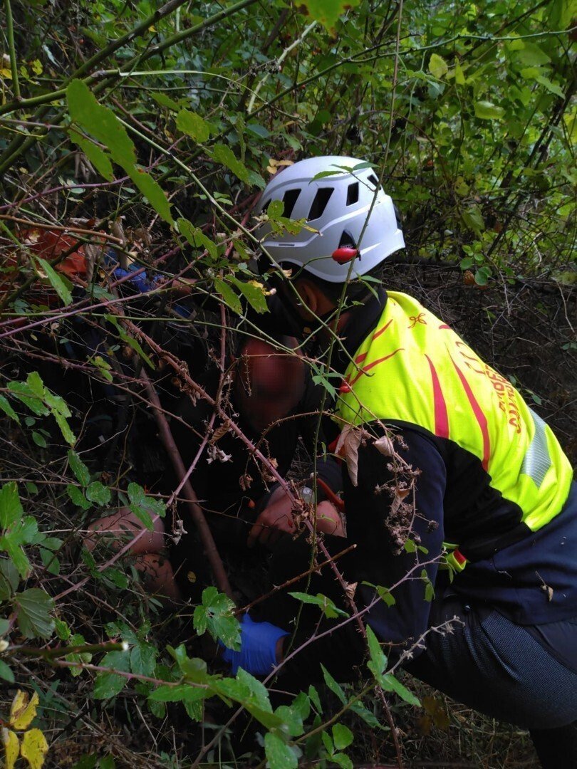 Bomberos del 112 han rescatado este viernes en Camaleño a un hombre con una luxación en el hombro tras caer en una zona de maleza al ceder el camino por el que transitaba, cercano a la localidad de Las Ilces.