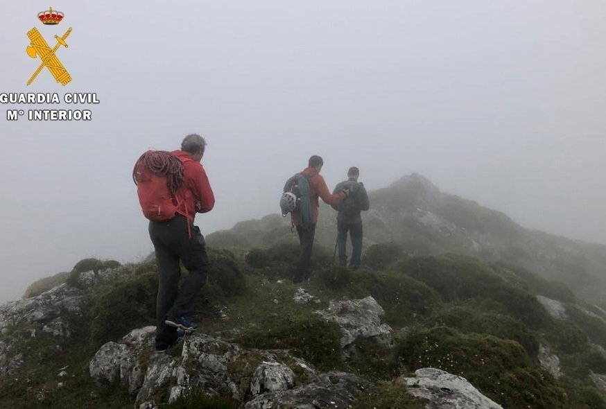 Pero en ese momento, comenzó a aparecer una densa niebla que les desorientó, lo que, sumado a la humedad del terreno y las fuertes pendientes, les obligó a dar aviso por teléfono a la Guardia Civil.