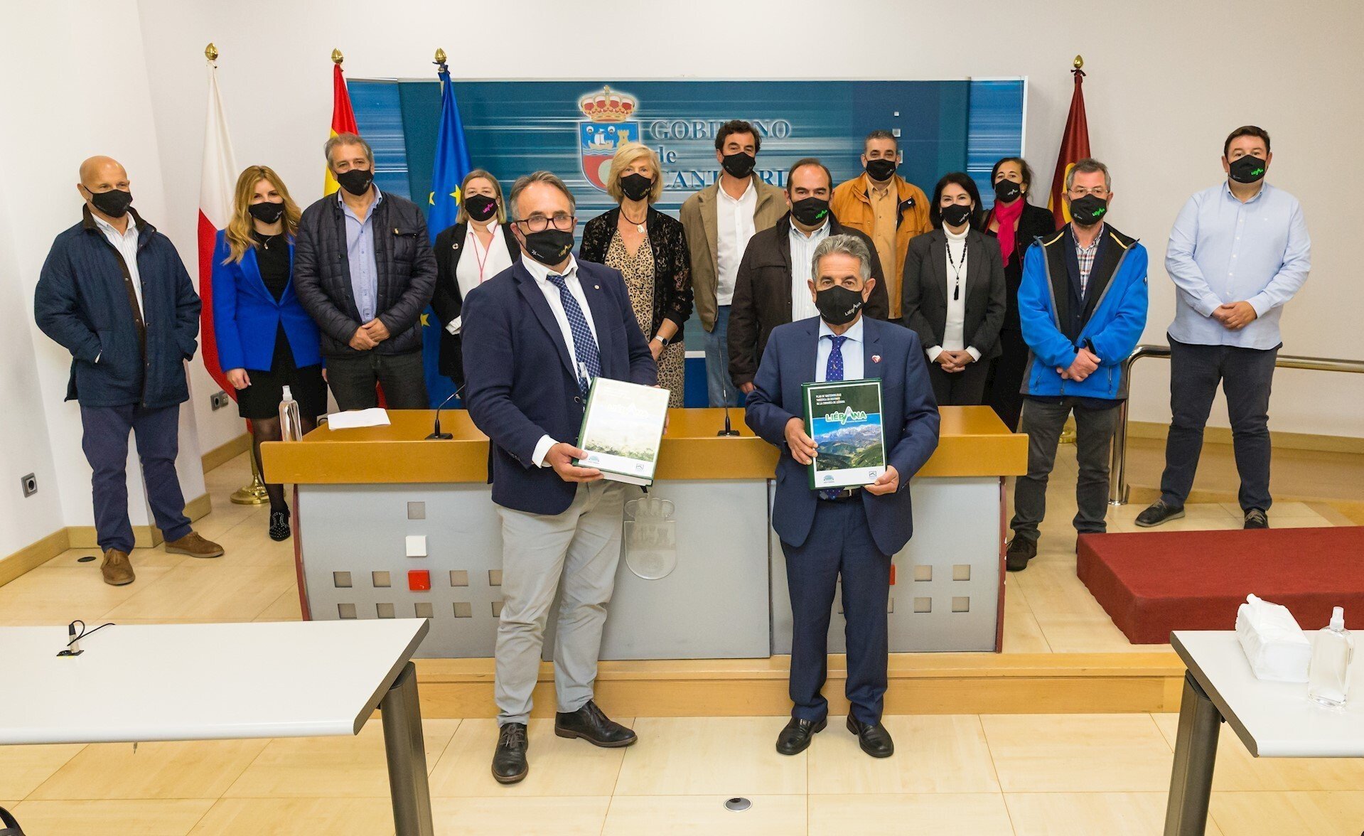 El jefe del Ejecutivo ha estado acompañado en el acto por la consejera de Turismo, Marina Lombó; la directora general, Eva Bartolomé; el director de Cantur, Bernardo Colsa, y los alcaldes de 6 de los 8 municipios lebaniegos: Gregorio Alonso (Vega de Liébana), Óscar Casares (Camaleño), Enrique Sobaris (Pesaguero), Jesús Fuente (Cabezón de Liébana); Francisco Javier Campo (Tresviso) y Jesús María Cuevas (Cillorigo de Liébana).