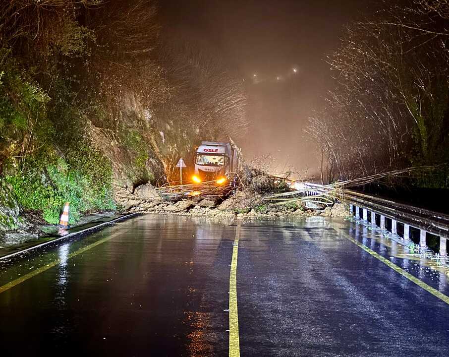 A primera hora de esta noche un argayo de tierra, árboles y piedras ha caído sobre la vía, sin tener que lamentar daños personales.
