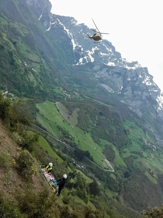 El helicóptero medicalizado del Gobierno de Cantabria ha evacuado de Bodia, en el término municipal de Camaleño, a una mujer con posible fractura de ligamentos de la rodilla.