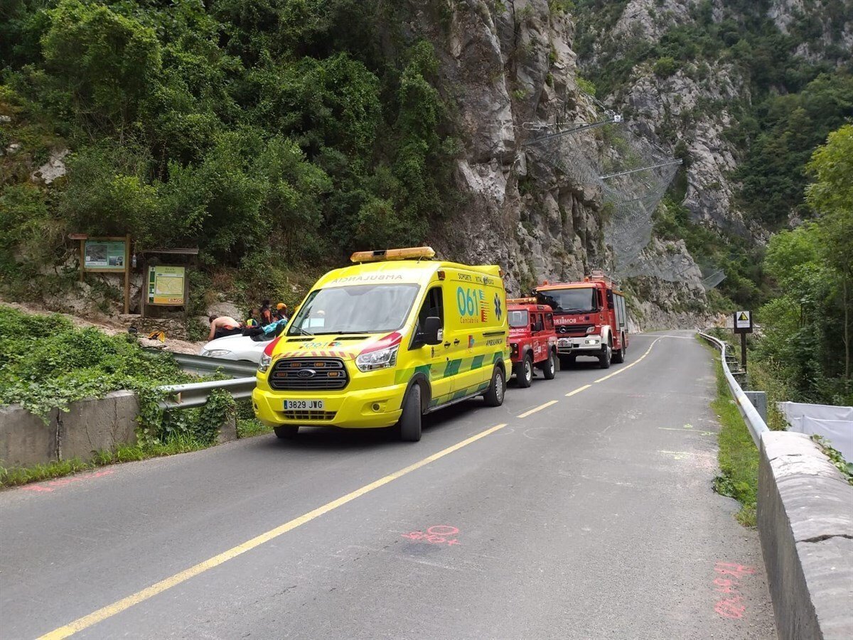Sus acompañantes han dado aviso de lo ocurrido al Centro de Coordinación de Emergencias del 112 del Gobierno de Cantabria a las 12.30 horas. Hasta el lugar ha movilizado para acudir en su ayuda a bomberos del propio servicio autonómico pertenecientes al parque de Tama, y a sanitarios del 061.