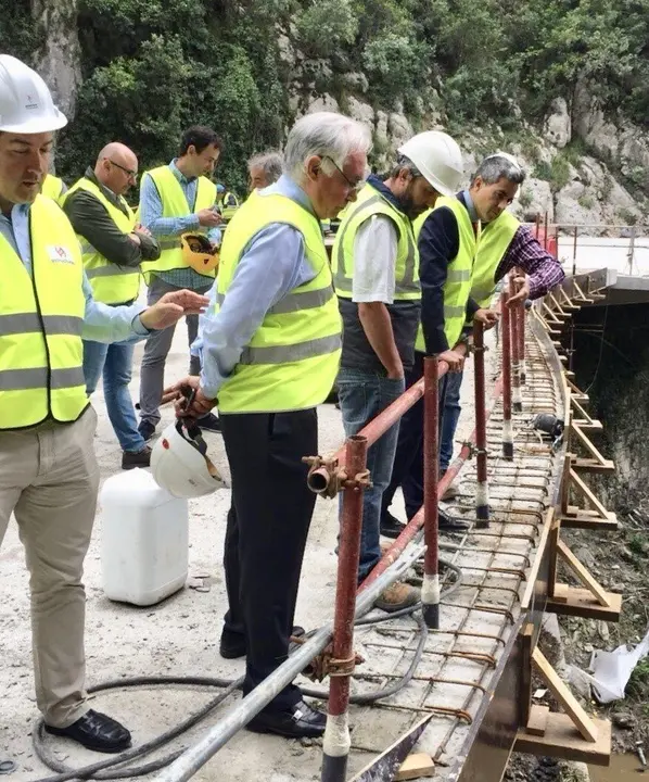 El delegado Gobierno en Cantabria, Pablo Zuloaga, ha asistido este jueves a la colocación del último puente en el Desfiladero de La Hermida. Se trata de la infraestructura situada en Cillorigo de Liébana, en el acceso norte.