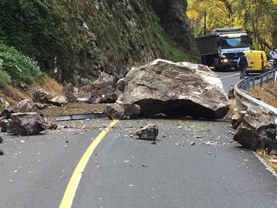 Las lluvias caidas en los últimos días han provocado la caída de piedras de grandes dimesiones en el desfiladero de La Hermida en la mañana de hoy.