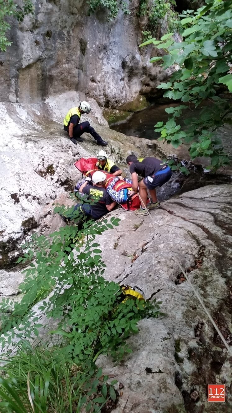 Bomberos del Servicio de Emergencias de Cantabria (SEMCA) han rescatado esta tarde a un hombre de 52 años, de Frankfurt (Alemania), en el barranco del río Navedo, en Peñarrubia. El herido, que presenta una posible rotura o desplazamiento de la rótula, a la espera de valoración hospitalaria, se encontraba practicando barranquismo junto a un grupo organizado con monitores cuando se lesionó a consecuencia de un golpe y no podía doblar la rodilla.