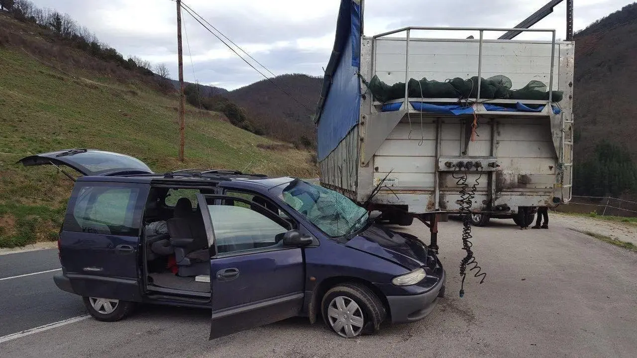 A las 16:45horas de hoy se producía este accidente en la nacional 621 a su por Bores tras soltarse la caja de un camión e impactar contra un vehículo.