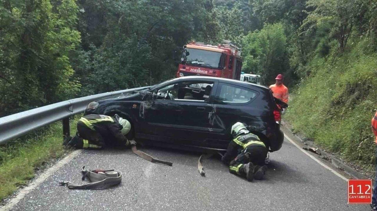Bomberos del servicio de emergencias de 112 Cantabria acudían en el día de hoy a la carretera CA-875 a la altura del acceso a Lomeña en Pesaguero, Liébana, por aviso de vuelco de un vehículo.