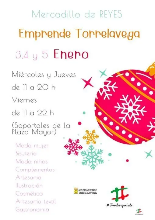 Los soportales de la Plaza Mayor acogerán desde hoy hasta este viernes, 5 de enero, el Mercadillo de Reyes 'Emprende Torrelavega', en el que participarán una docena de expositores de sectores como moda, complementos, bisutería, ilustración, cosmética, artesanía textil y gastronomía.