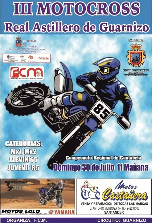 El III Motocross Real Astillero de Guarnizo se disputará este domingo, 30 de julio, con la participación de pilotos de Cantabria de diferentes categorías: Mx1, Mx2 y Alevín 65 y Juvenil 85, como en anteriores ediciones.