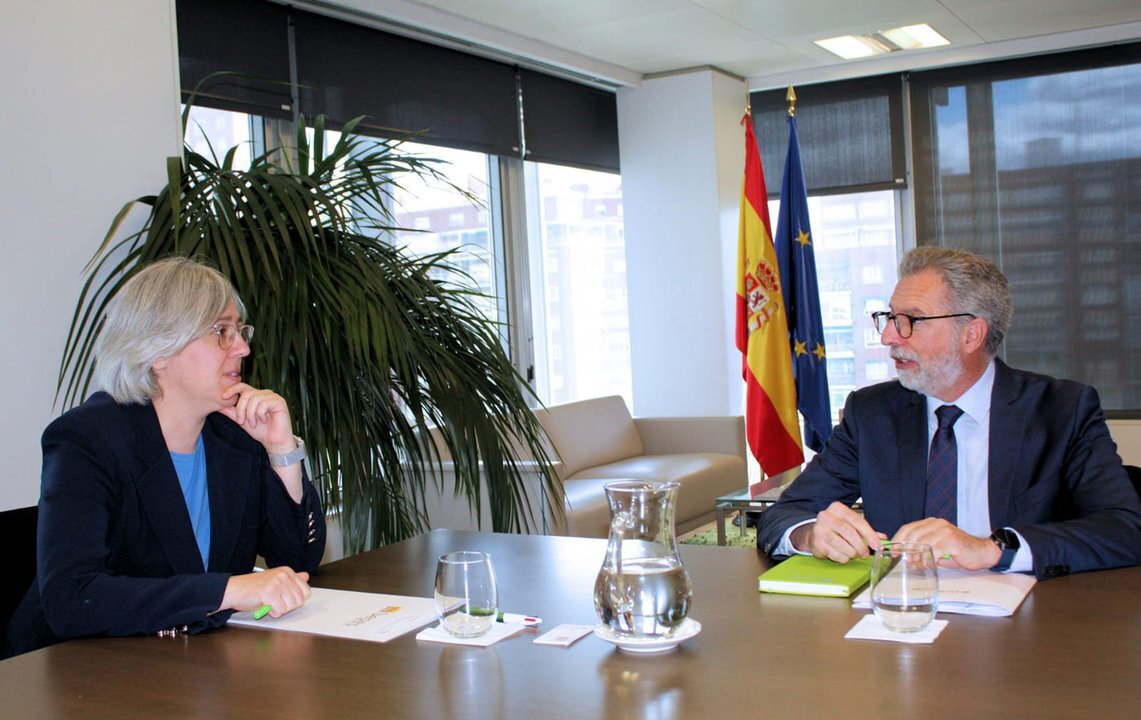 El director SICAN -dependiente de la Consejería de Industria, Empleo, Innovación y Comercio del Gobierno de Cantabria-, Ezequiel San Emeterio, se ha reunido este martes en Madrid con la directora general de la SEPES, Leire Iglesias, y el director de Estrategia y Coordinación de esta entidad estatal del Ministerio de Vivienda Agenda Urbana, Benjamín López.