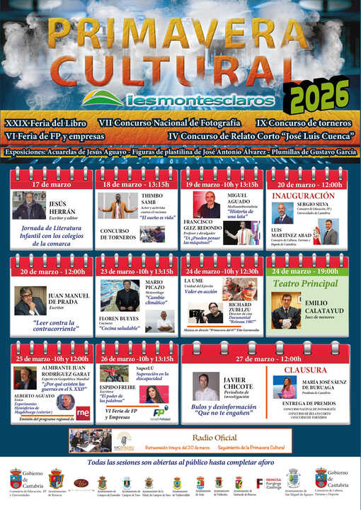El juez Calatayud, dos premios Planeta, la UME y el almirante Rodríguez Garat protagonizarán la XI Primavera Cultural del IES Montesclaros de Reinosa que comenzará este martes, 17 de marzo, y se prolongará hasta el día 27 con la intervención del periodista de investigación Javier Chicote.
