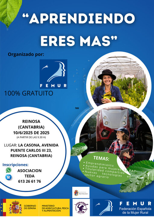 La Federación Española de la Mujer Rural ha organizado en Reinosa la jornada formativa 'Aprendiendo eres más', que abordará temas como el emprendimiento femenino en agroalimentación, ayudas de la PAC para mujeres, y titularidad compartida y derechos en igualdad.