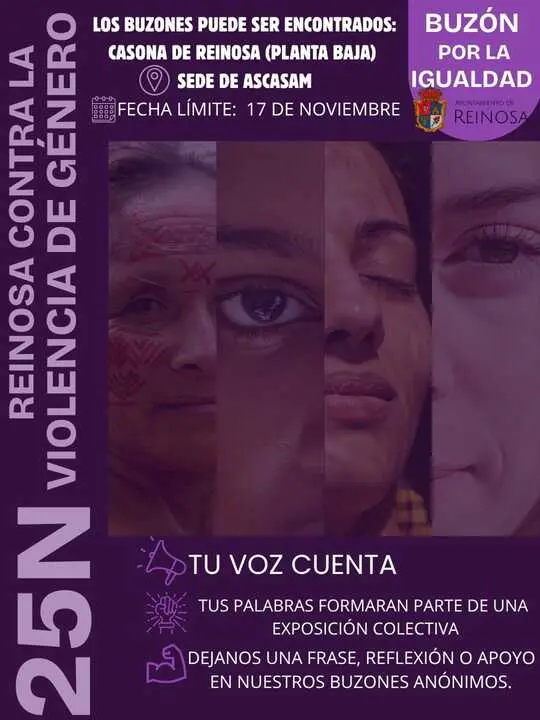 La Concejalía de Igualdad del Ayuntamiento de Reinosa ha lanzado dos iniciativas para concienciar contra la violencia machista, consistentes en la instalación de un 'buzón de frases por la igualdad' y la acción colectiva de decorar escaparates, fachadas y ventanas de morado.