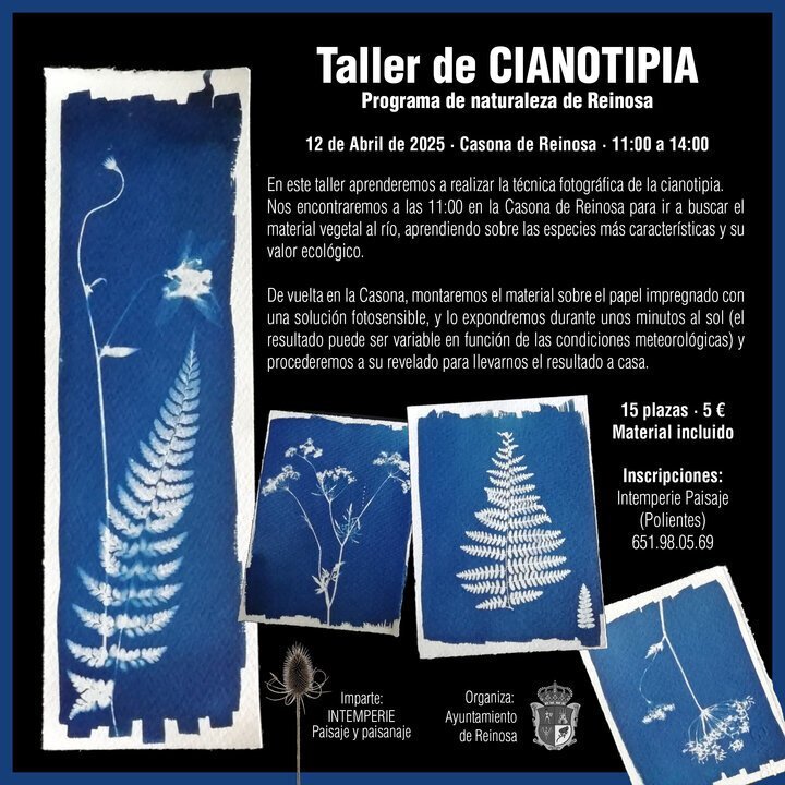 Enmarcado dentro del programa anual de actividades que organiza la Concejalía de Medio Ambiente del Ayuntamiento de Reinosa, el sábado, 12 de abril, de 11.00 a 14.00 horas, tendrá lugar un Taller de Cianotipia con el que se aprenderá a realizar esta técnica fotográfica.