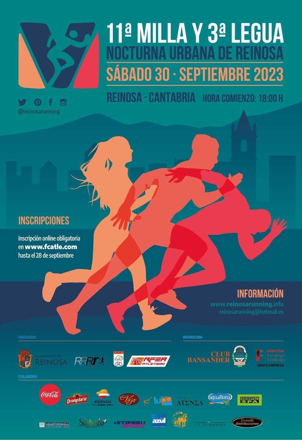 La 11 Milla y 3 Legua Nocturnas Urbanas de Reinosa esperan reunir este próximo sábado, 30 de septiembre, a partir de las 6 de la tarde, a mas de 500 participantes en las calles de la ciudad. Ambas competiciones, organizadas por el Club Reinosa Running con la colaboración del Ayuntamiento y la Federación de Atletismo, estarán abiertas a deportistas tanto federados como no, y tendrán, en el caso de la Milla, un recorrido de 1.609 metros y de 5.672 metros, en el de la Legua. Esta última está incluida en el calendario regional de pruebas en ruta mientras que la Milla ya lo está en el nacional.