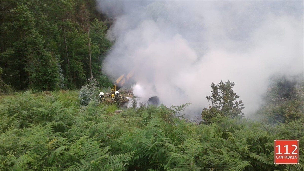 Bomberos del Servicio de Emergencias 112 del Gobierno de Cantabria han extinguido, esta mañana, un incendio producido en una maquinaria retroaraña en la zona de Carmona (Cabuérniga), en la subida al Mirador de La Vueltuca.