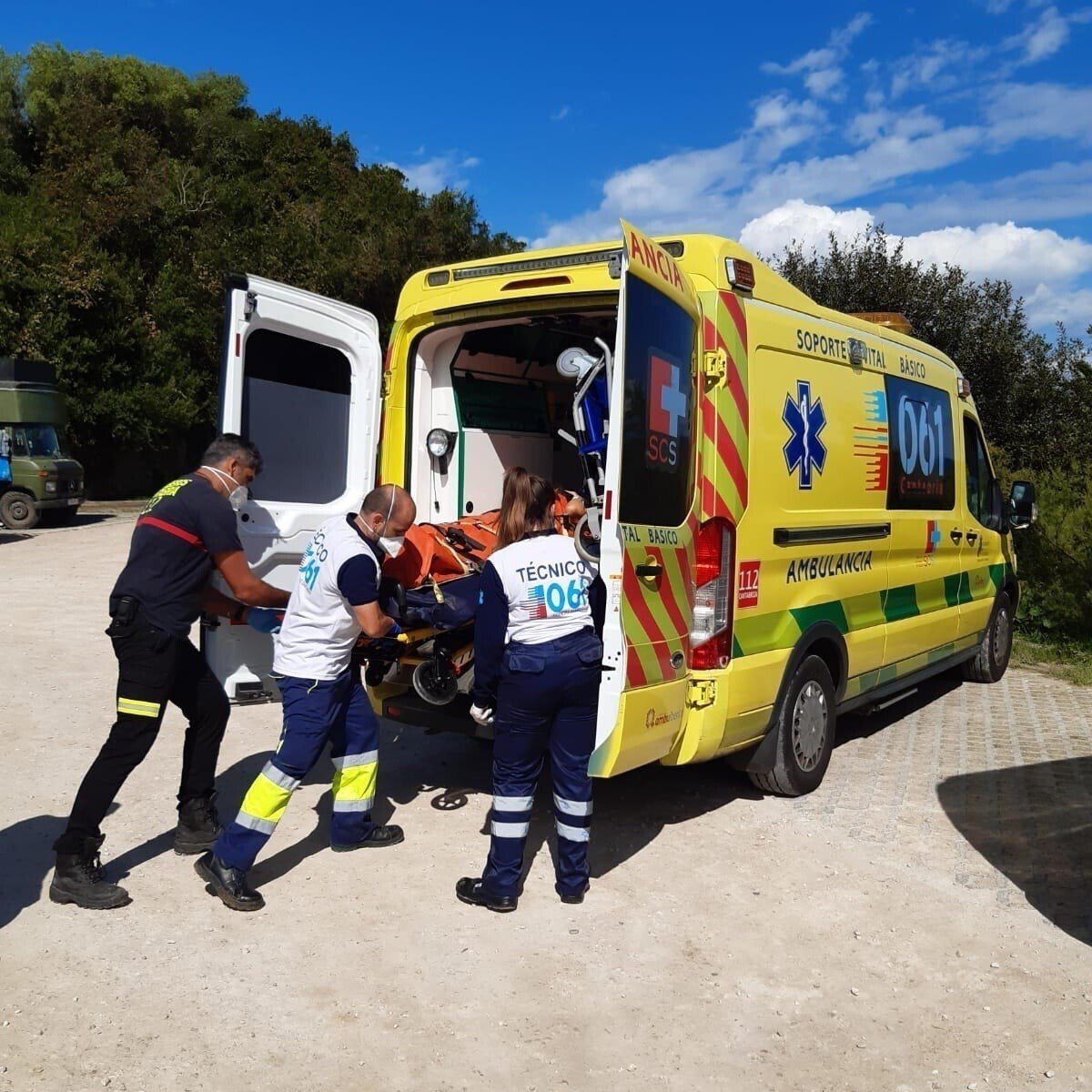 Los efectivos portearon a la afectada hasta una zona accesible para la ambulancia, donde una dotación del 061 la atendió y trasladó al centro médico, informan los bomberos
