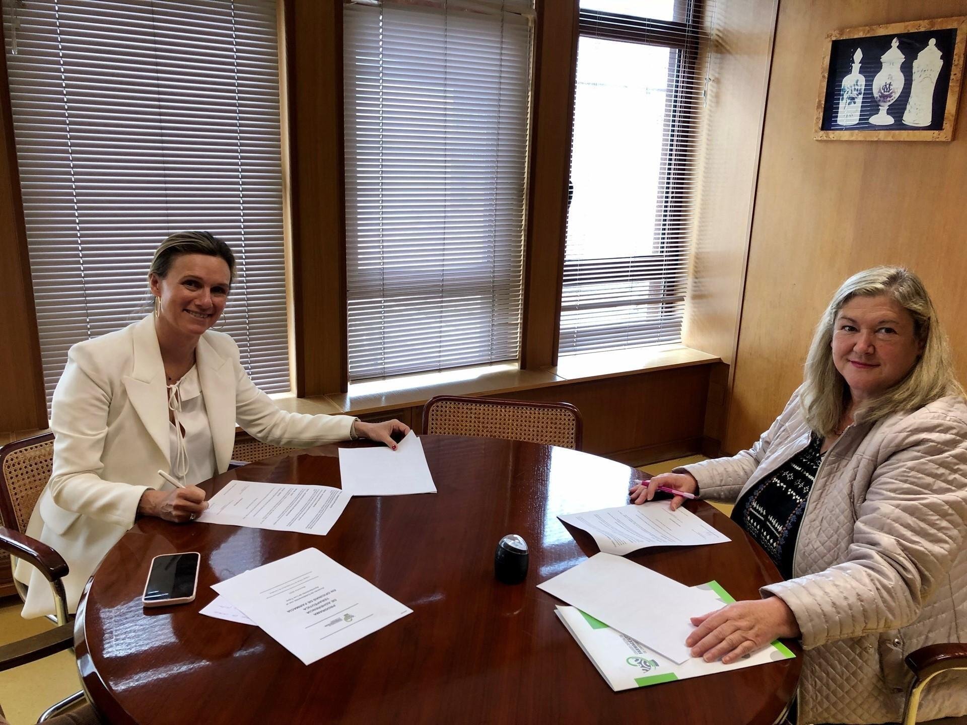 La presidenta del Colegio Oficial de Farmacéuticos de Cantabria (COF Cantabria), Rita de la Plaza, y la alcaldesa del Ayuntamiento de Los Tojos, María Belén Ceballos, han firmado hoy la renovación del acuerdo de colaboración para la mejora del uso de la medicación en personas dependientes, en vigor desde abril de 2021.
