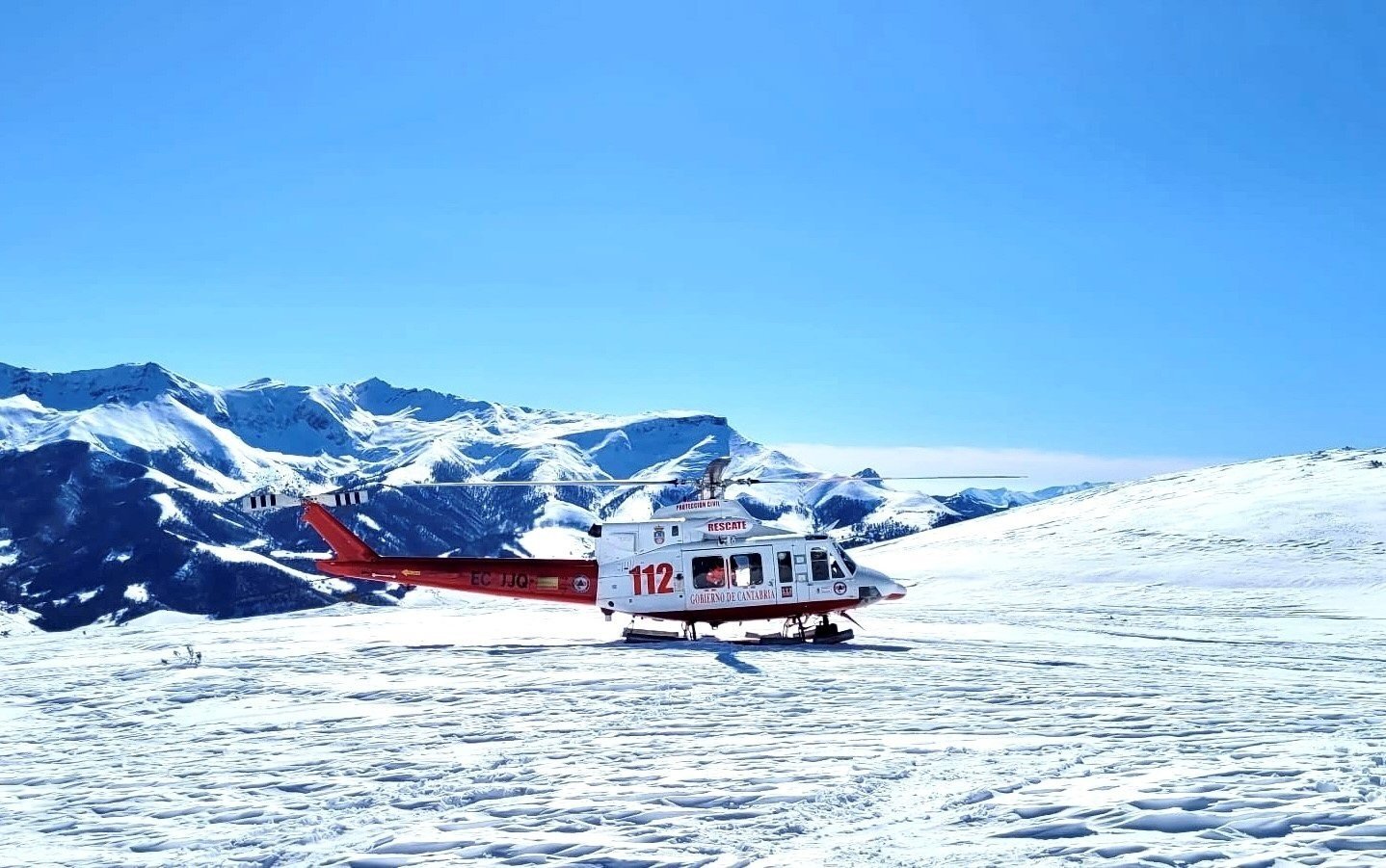 El helicóptero evacúa a un esquiador de travesía accidentado en la sierra de Peña Sagra