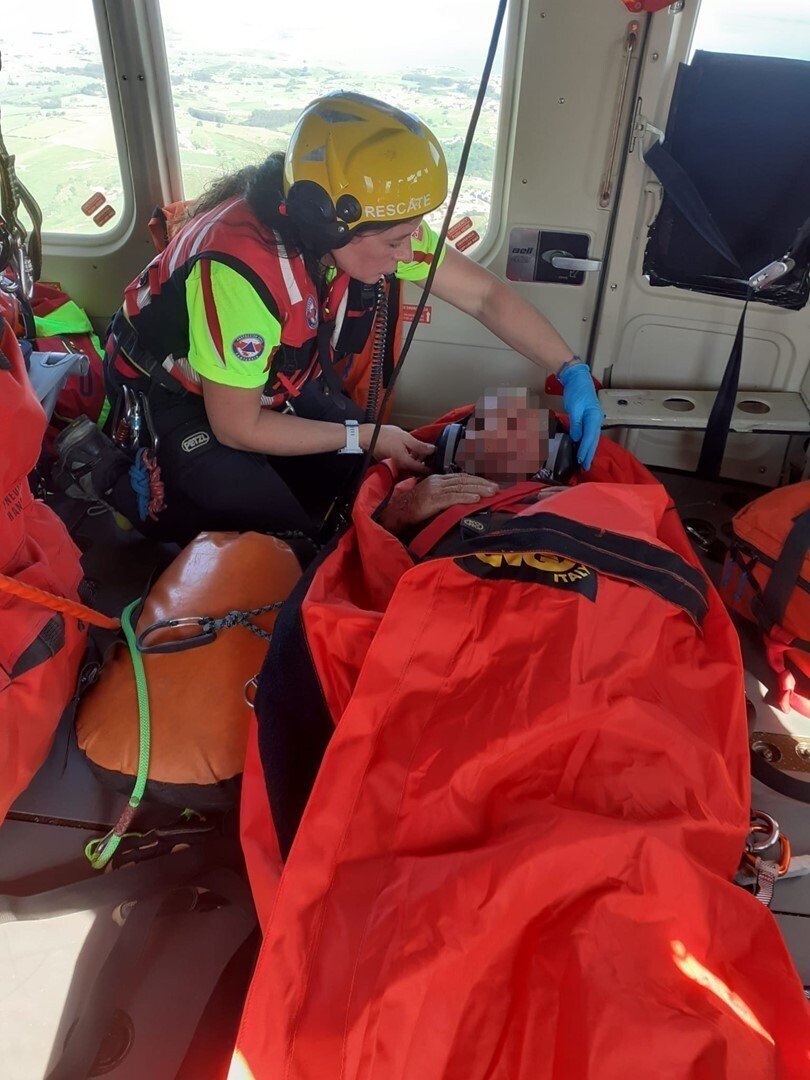 A la llegada de la aeronave al punto en el que se ha producido el accidente, han descendido hasta el herido, mediante operaciones de grúa un rescatador y una médico, que han estabilizado al afectado, le han inmovilizado en una camilla, y le han izado al helicóptero siguiendo la misma técnica que en el descenso.