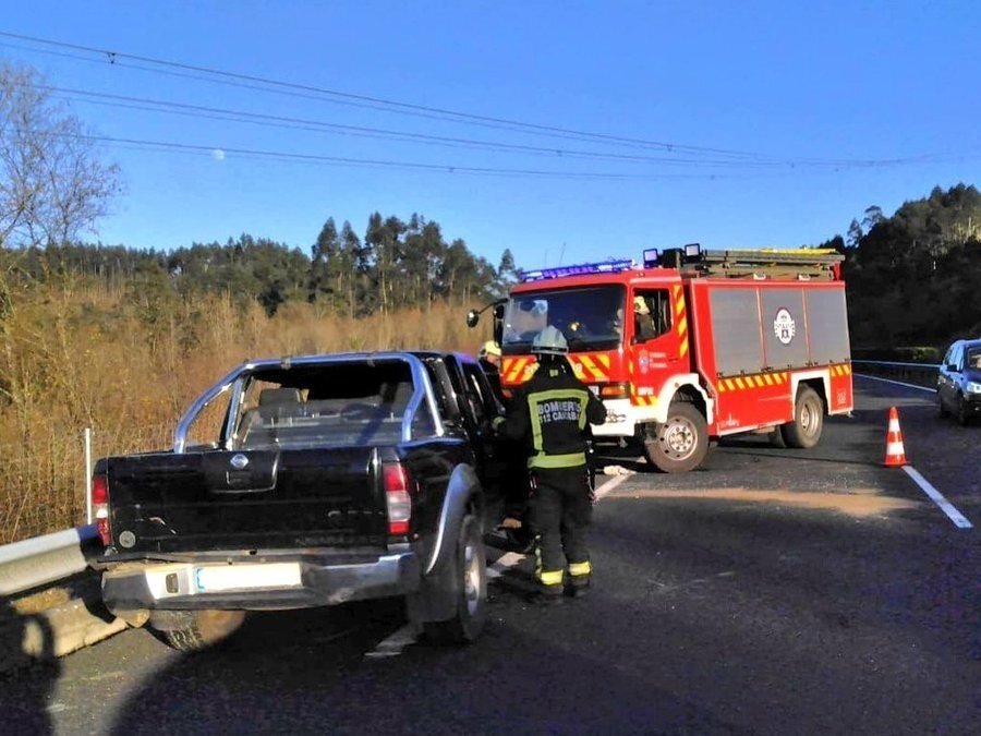 Un herido leve en el vuelco de un coche al chocar contra otro en la A-8 en Mazcuerras