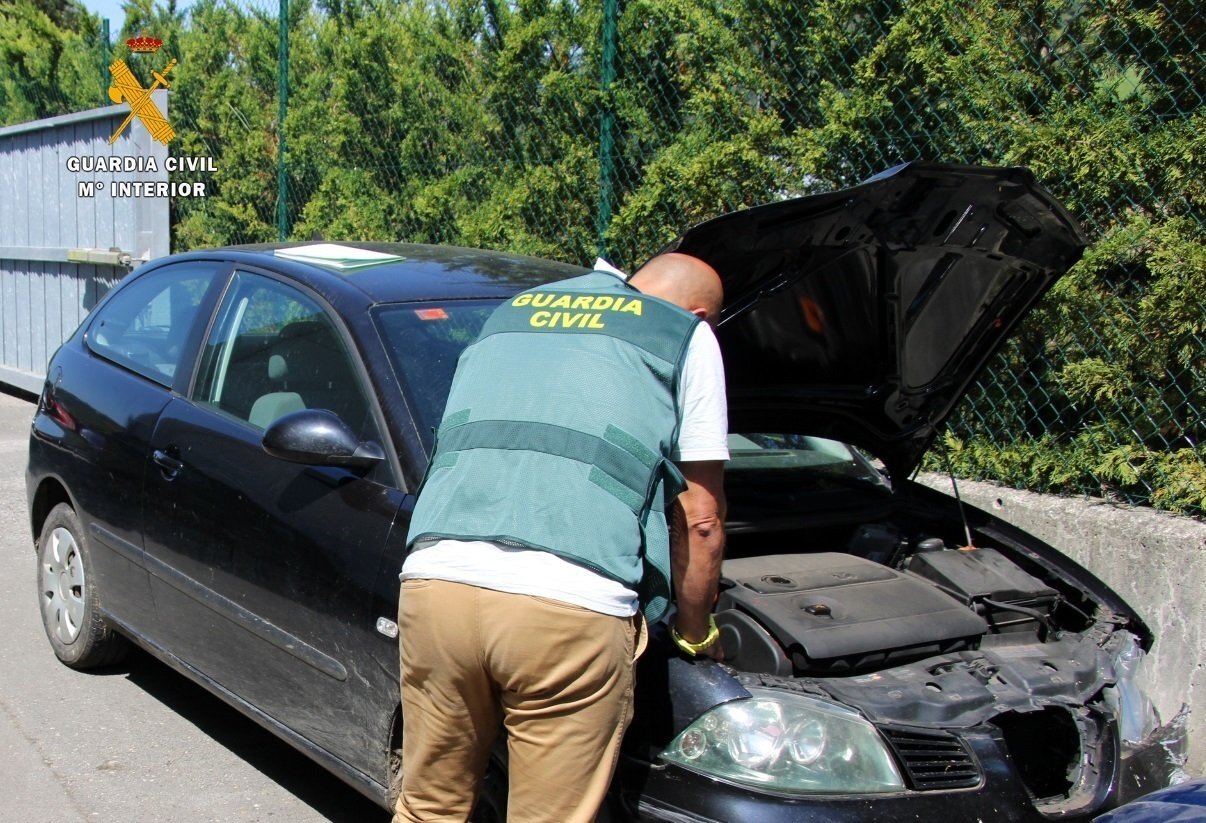 La Guardia Civil de Tráfico localizó un vehículo escondido en una pista forestal, a unos 900 metros del lugar del atropello, que tenía daños en el frontal, compatibles con el atropello y choque contra el talud.