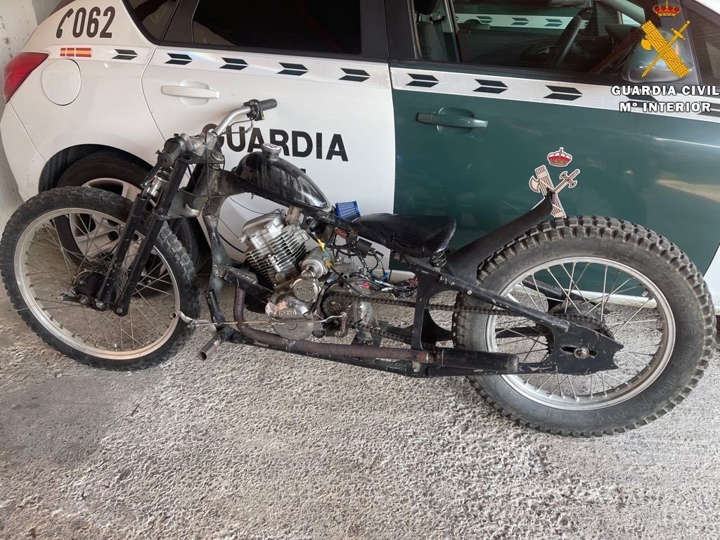 Los agentes pudieron localizar el vehículo, pero no al conductor y comprobaron que se trataba de una motocicleta totalmente artesanal, fabricada a partir de piezas de otros vehículos y sin ningún tipo de numeración.