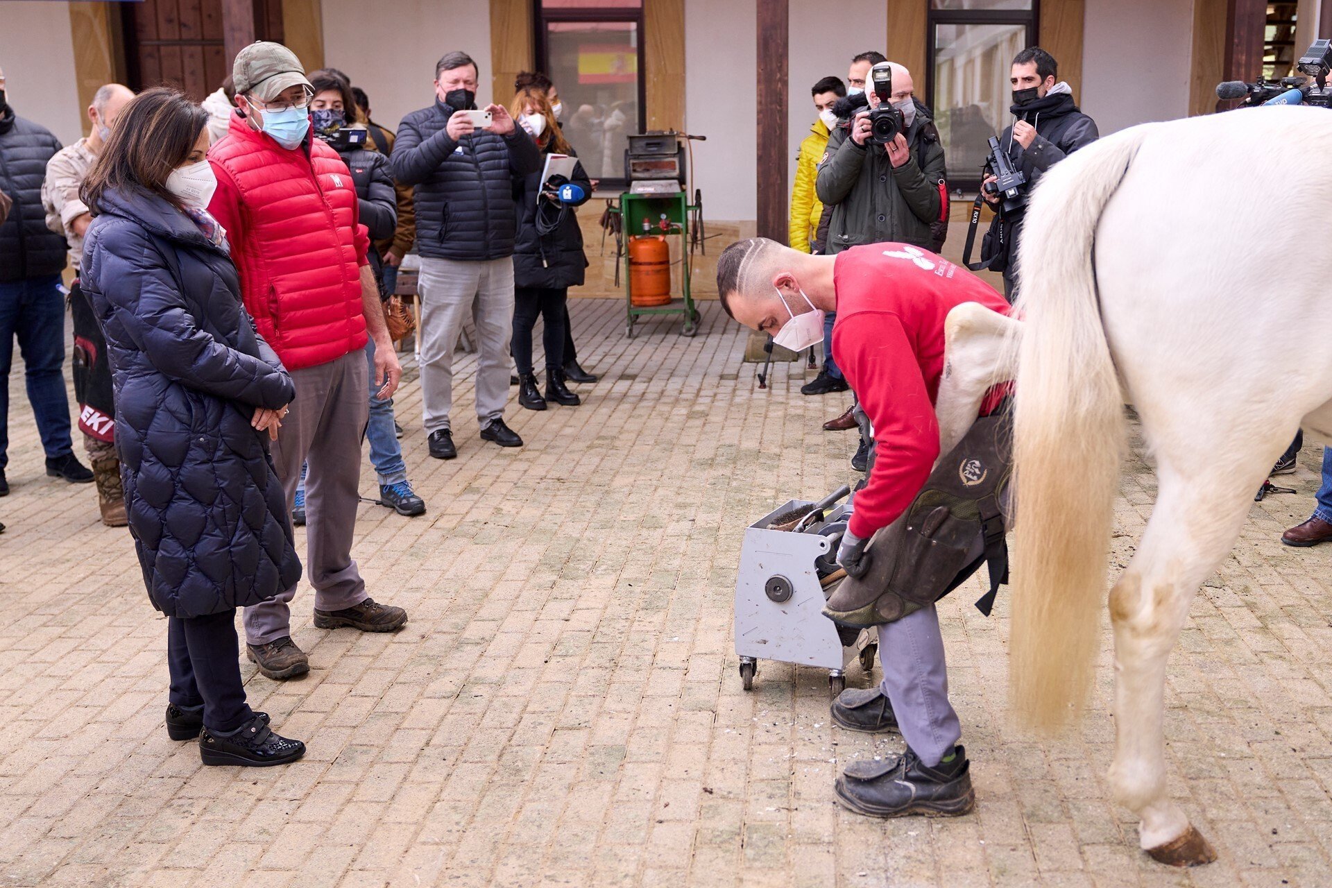 Posteriormente ha asistido a una presentación a cargo del subdirector general de Administración Periférica, Jesús Ángel García, y del jefe de las instalaciones de Cría Caballar de Mazcuerras, Eugenio Heredia. Ambos le han explicado las distintas funciones del centro, uno de los seis que existen en España con los fines de proteger la cabaña equina nacional y permitir la selección y mejora del ganado caballar autóctono.